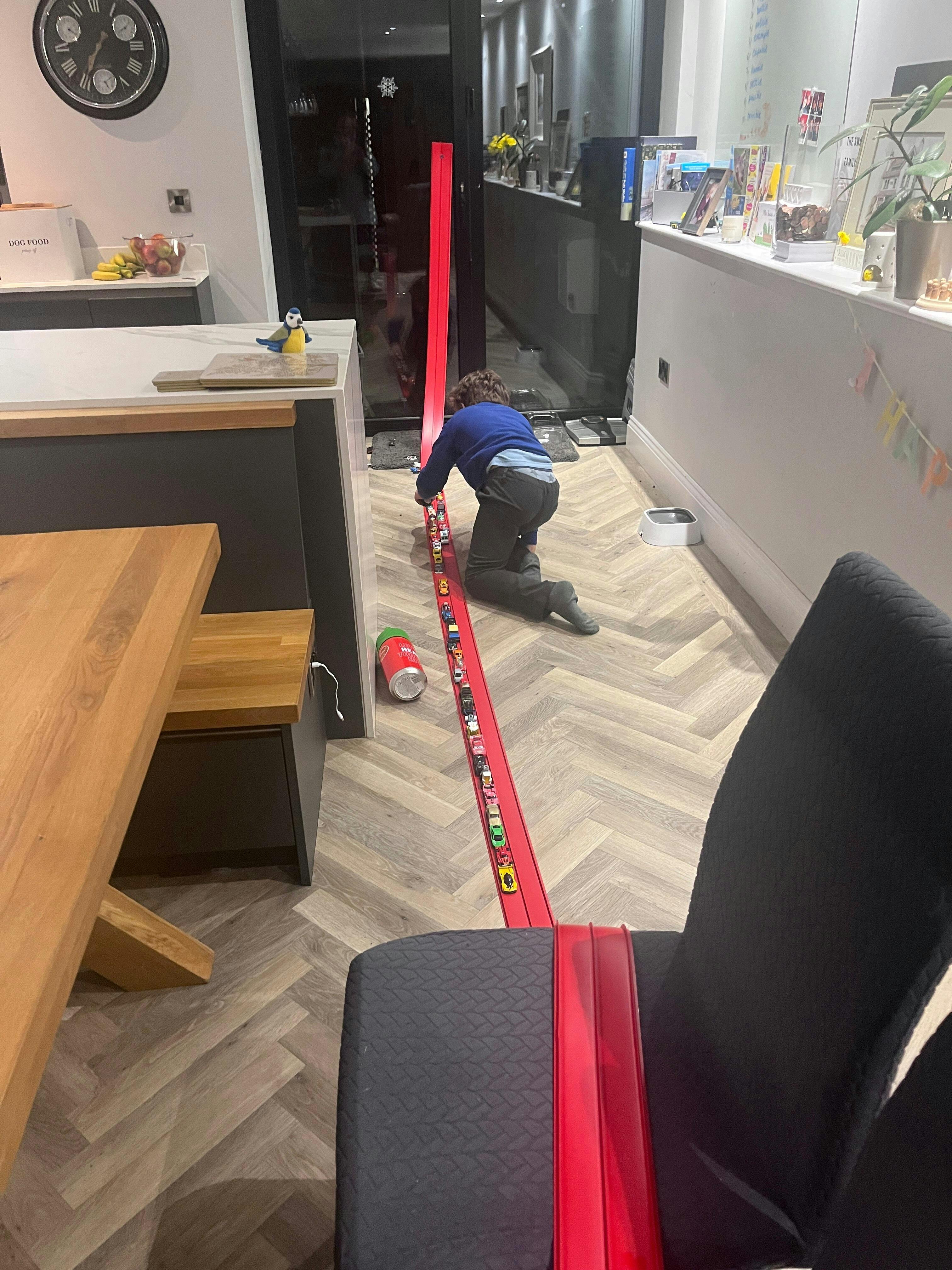 Use books, toy boxes, cushions and more to create the perfect jump - race yours cars and see how far they can fly!